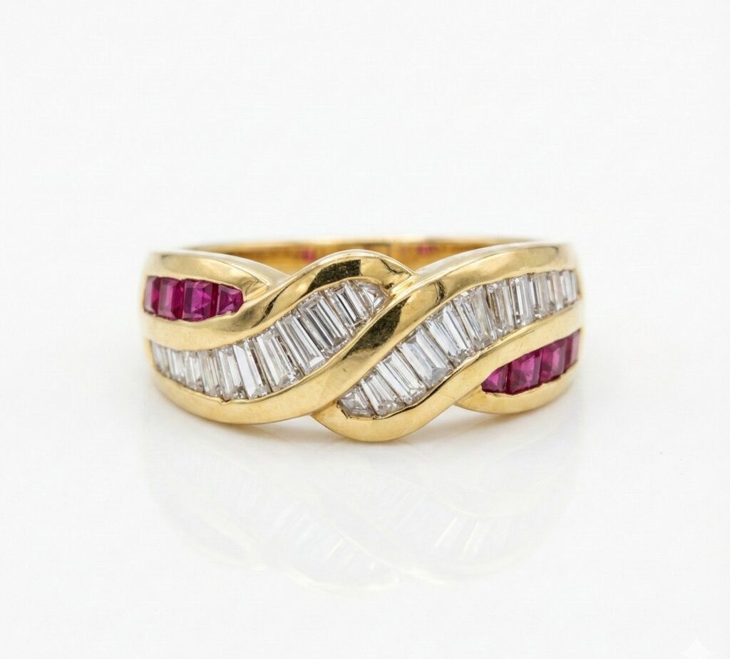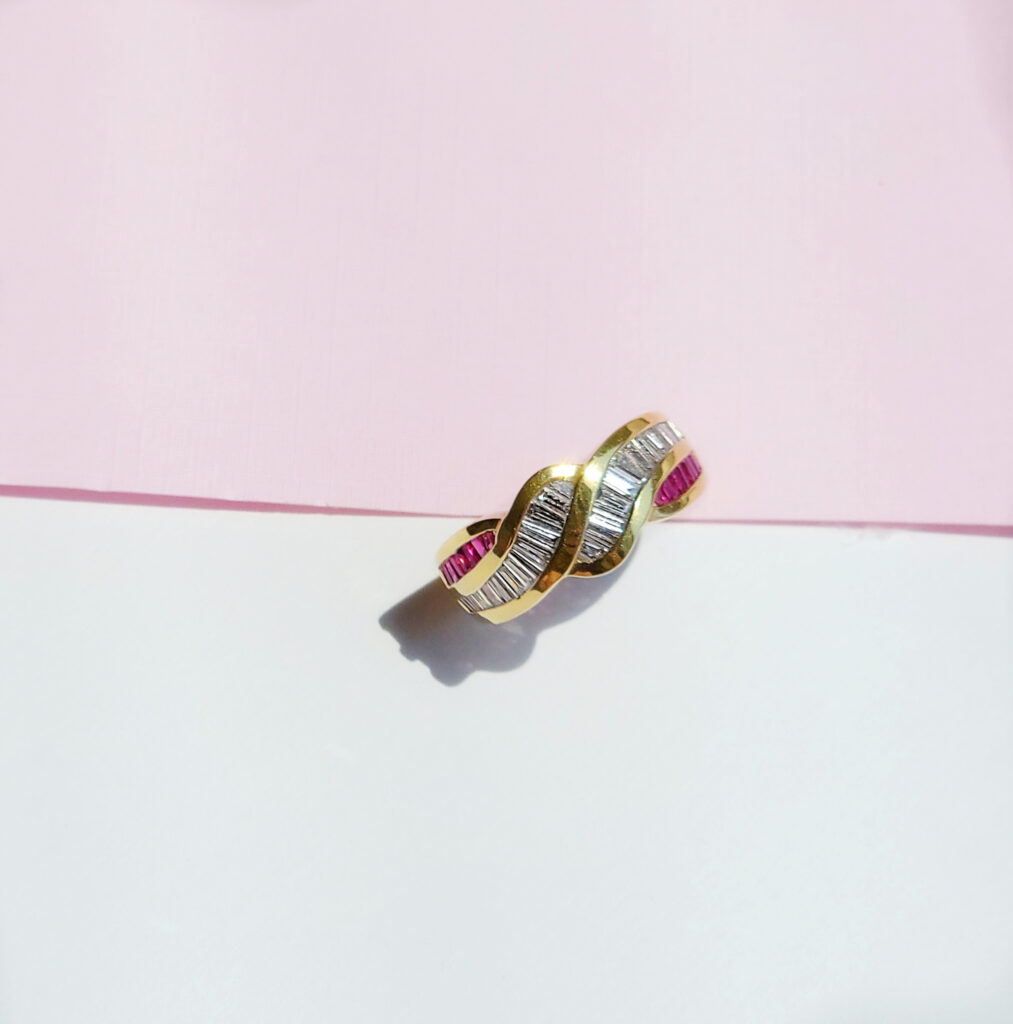 Guilded Intertwined Ivy Vine Ring .07ct TW Round Brilliant Diamonds, VS/F set in hand-made 14k Yellow Gold.